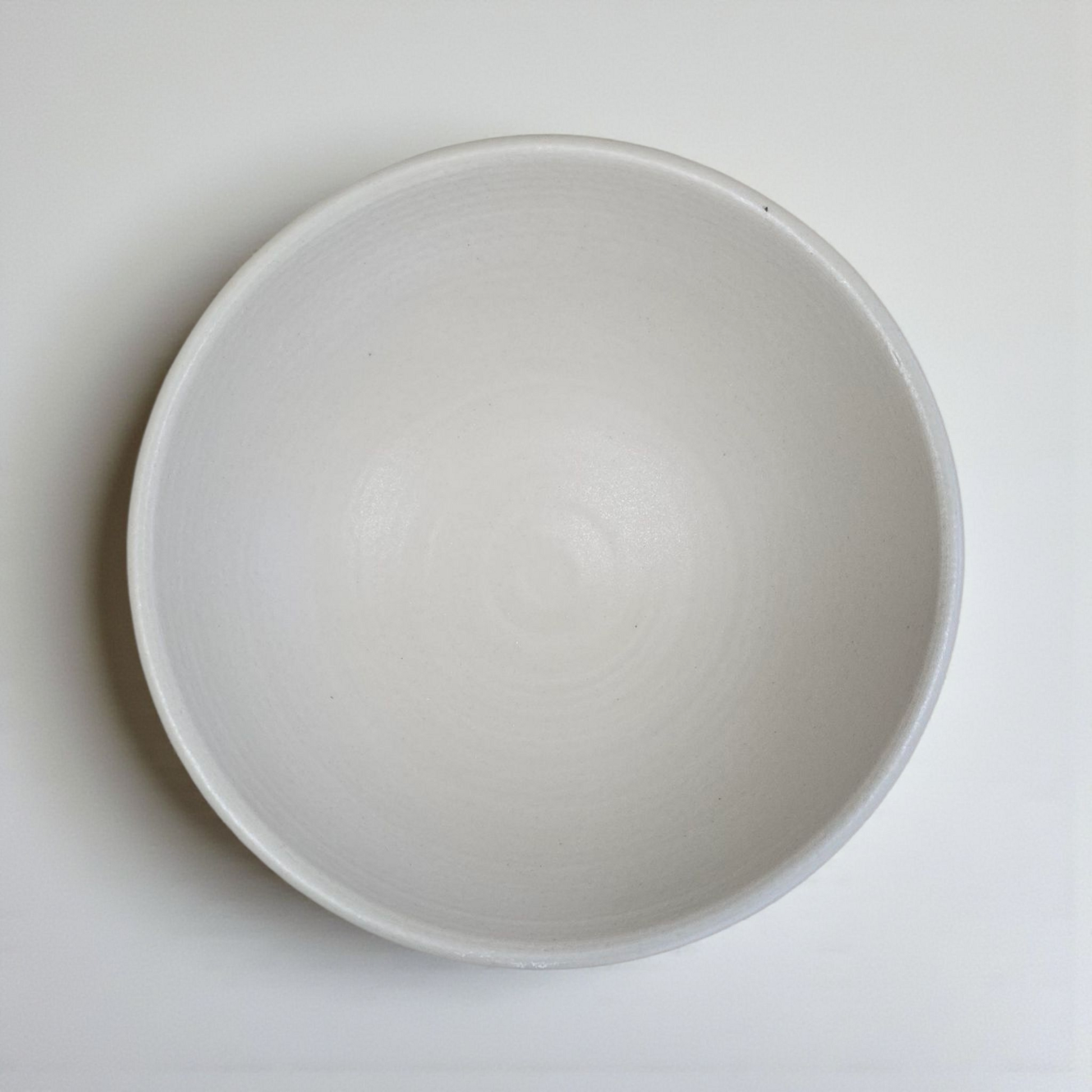 This elegant ceramic bowl stands on a subtle foot, giving it a refined and timeless silhouette.