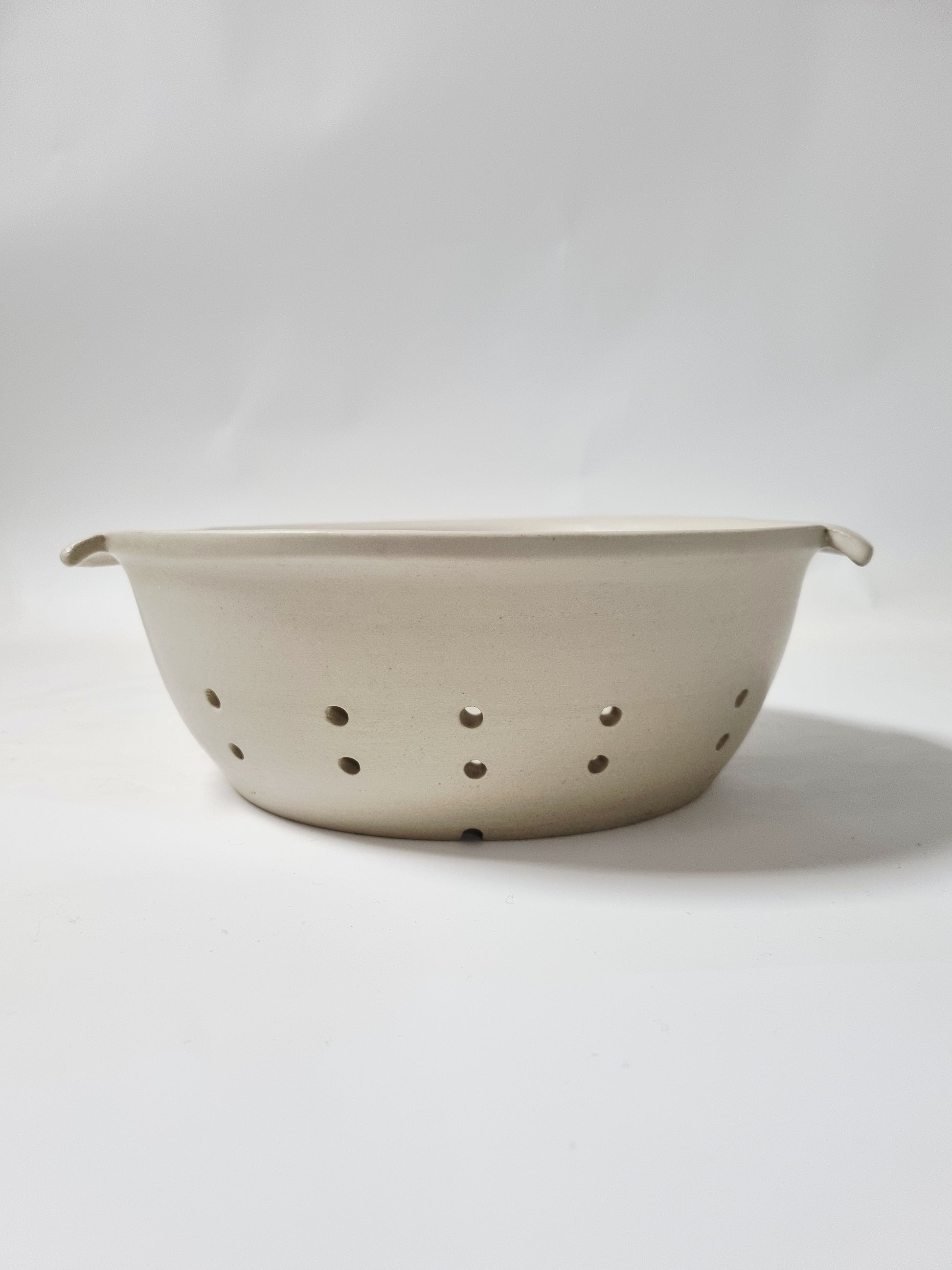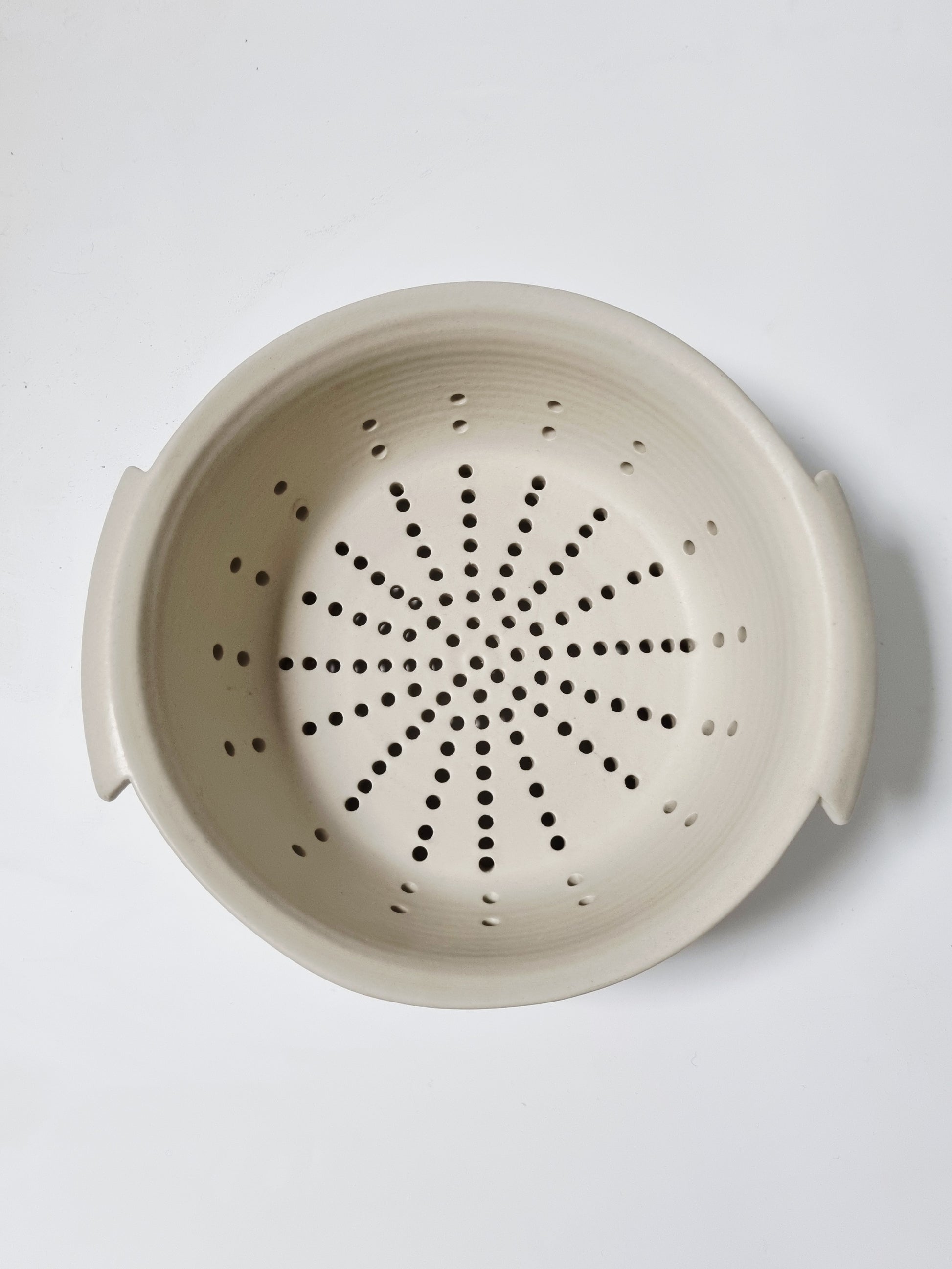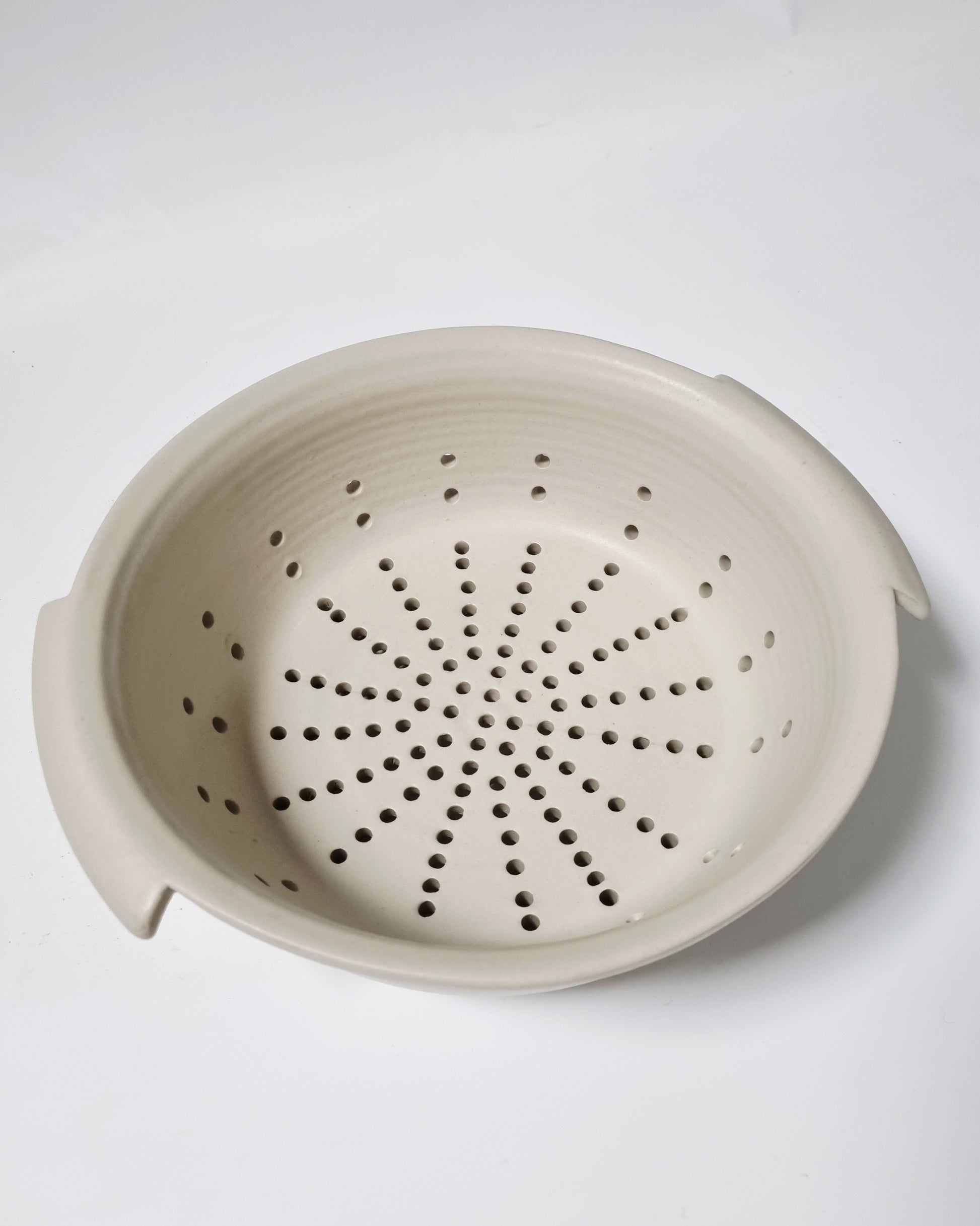 Door de matte glazuur die je de draairingen mooi lopen. Met een diameter van 17cm (exclusief de handvaten) en een hoogte van 10 cm. Heb je veel ruimte om je groenten bijvoorbeeld in te wassen.