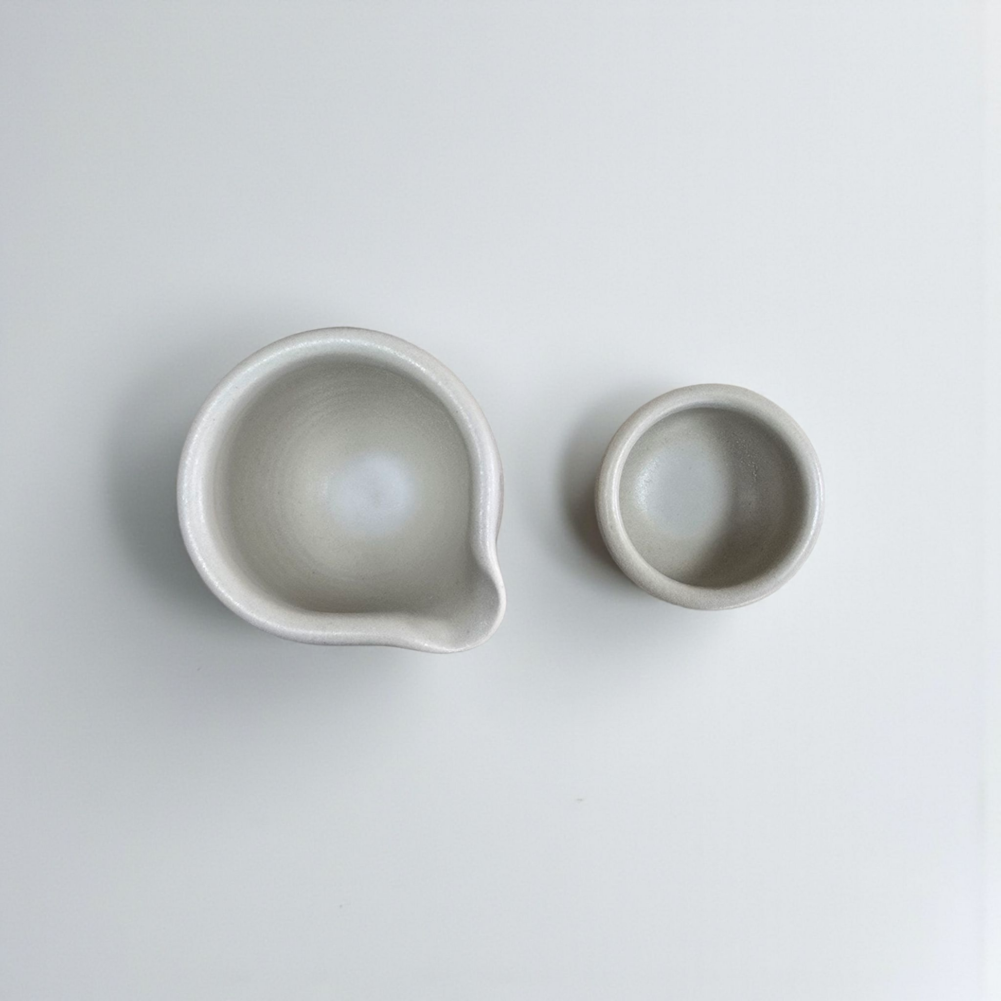 Both pieces are made from durable ceramic, with subtle variations in form and glaze that highlight their artisanal character.