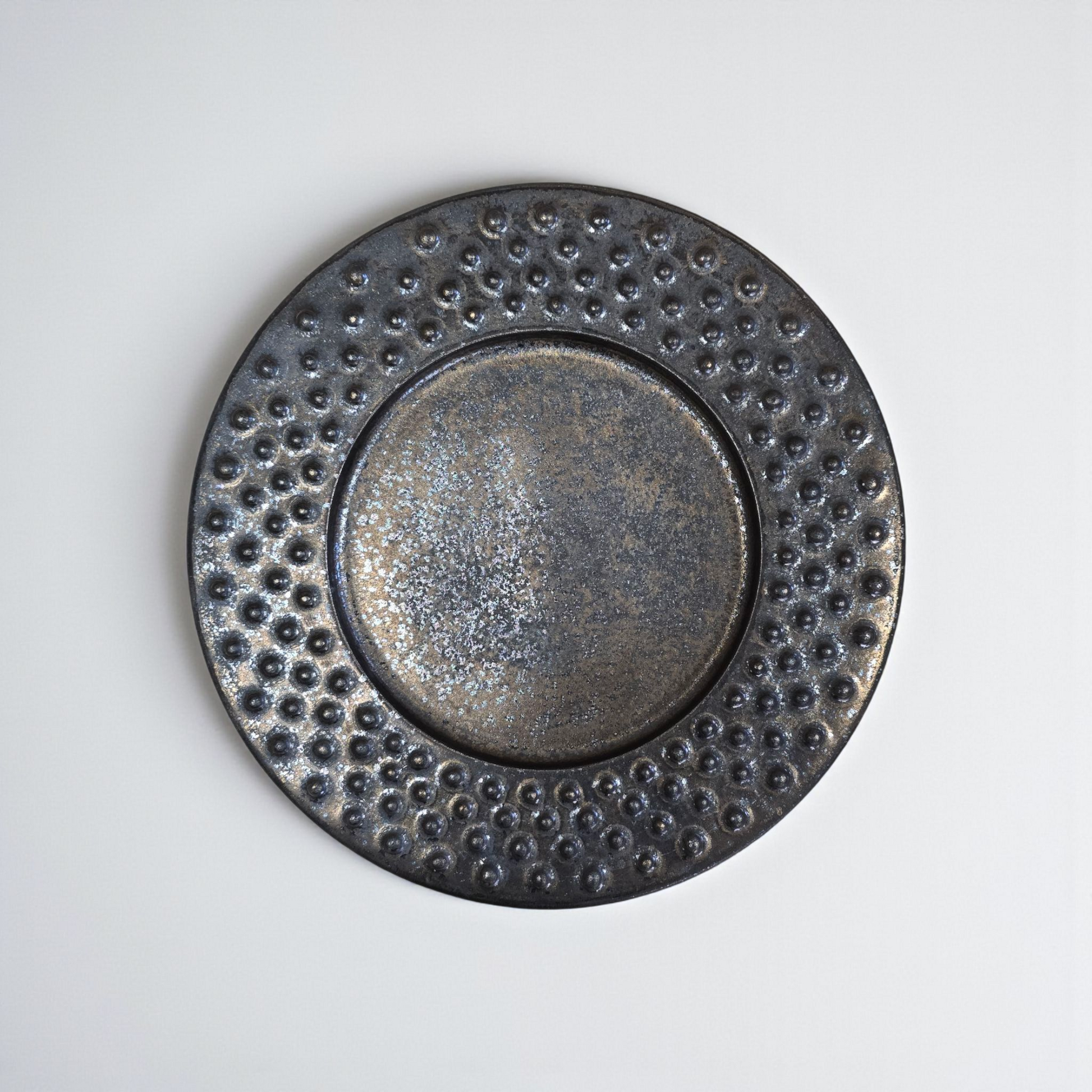 With its textured rim of raised dots and deep, metallic glaze, Nebula evokes the mysterious beauty of a star filled night sky.