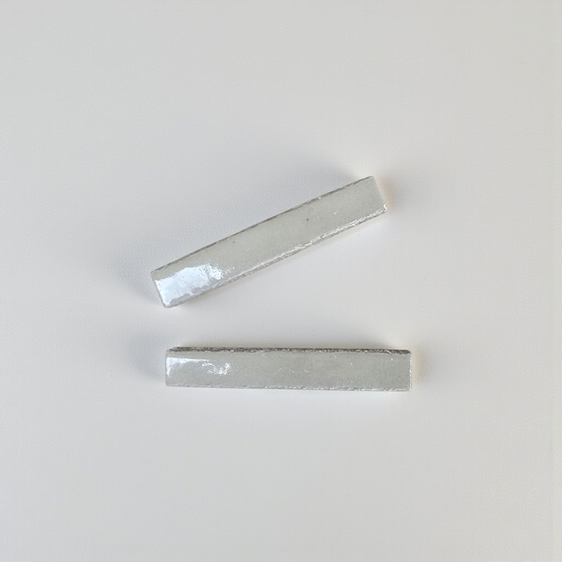 A pair of handcrafted ceramic knife rests finished with a glossy transparent glaze and subtle crystal details.